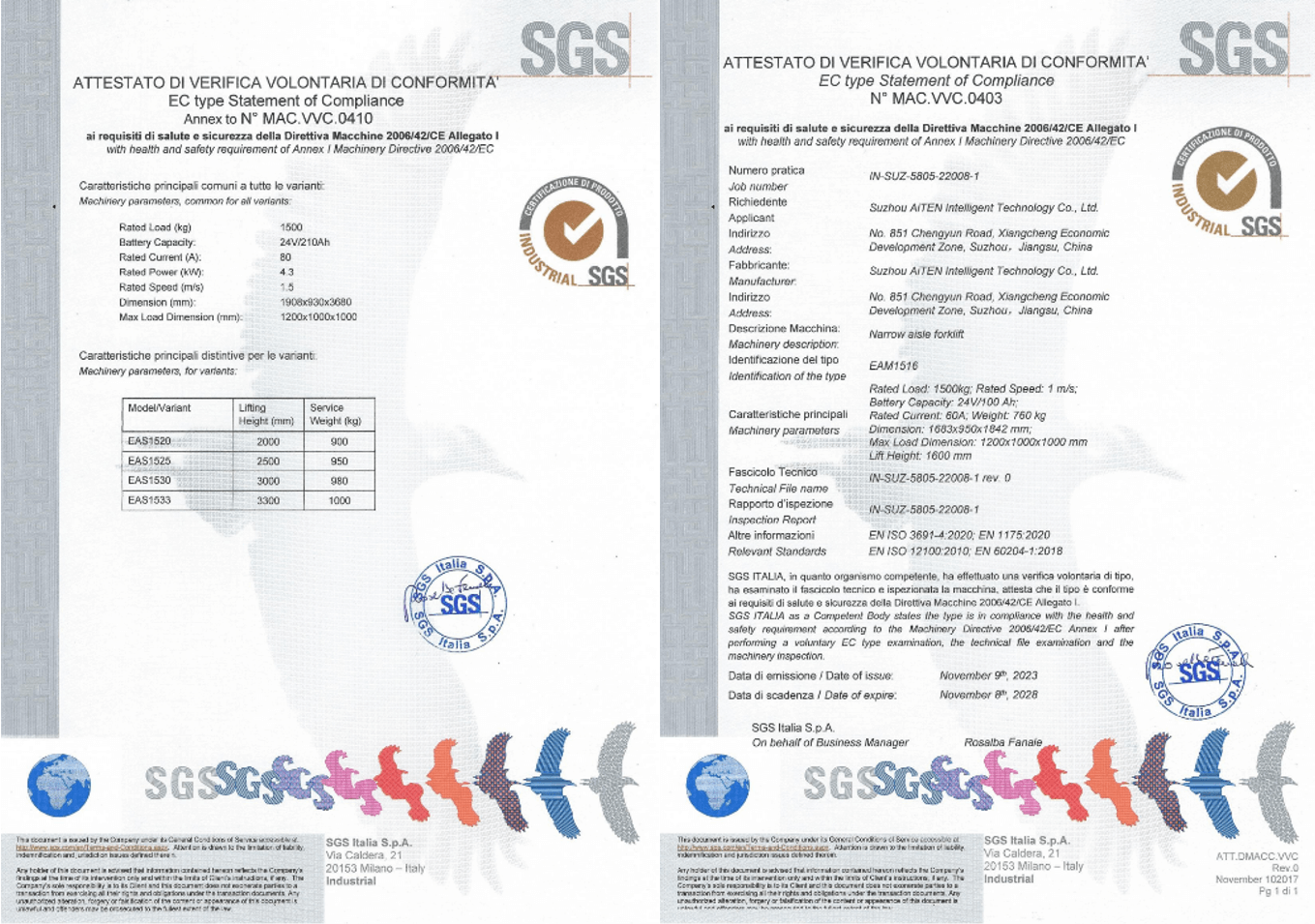 3. CE 标志(欧盟): 确保符合机械指令,强调对繁忙仓库等动态环境的风险评估,在这些环境中,叉车与行人和手动设备相互作用。为满足欧洲市场的法规要求,九游体育产品经过严格审核,为包括 MP10、AM1516、AE15、AS15 和其他产品在内的 AGV 产品获得了欧盟 CE 证书。